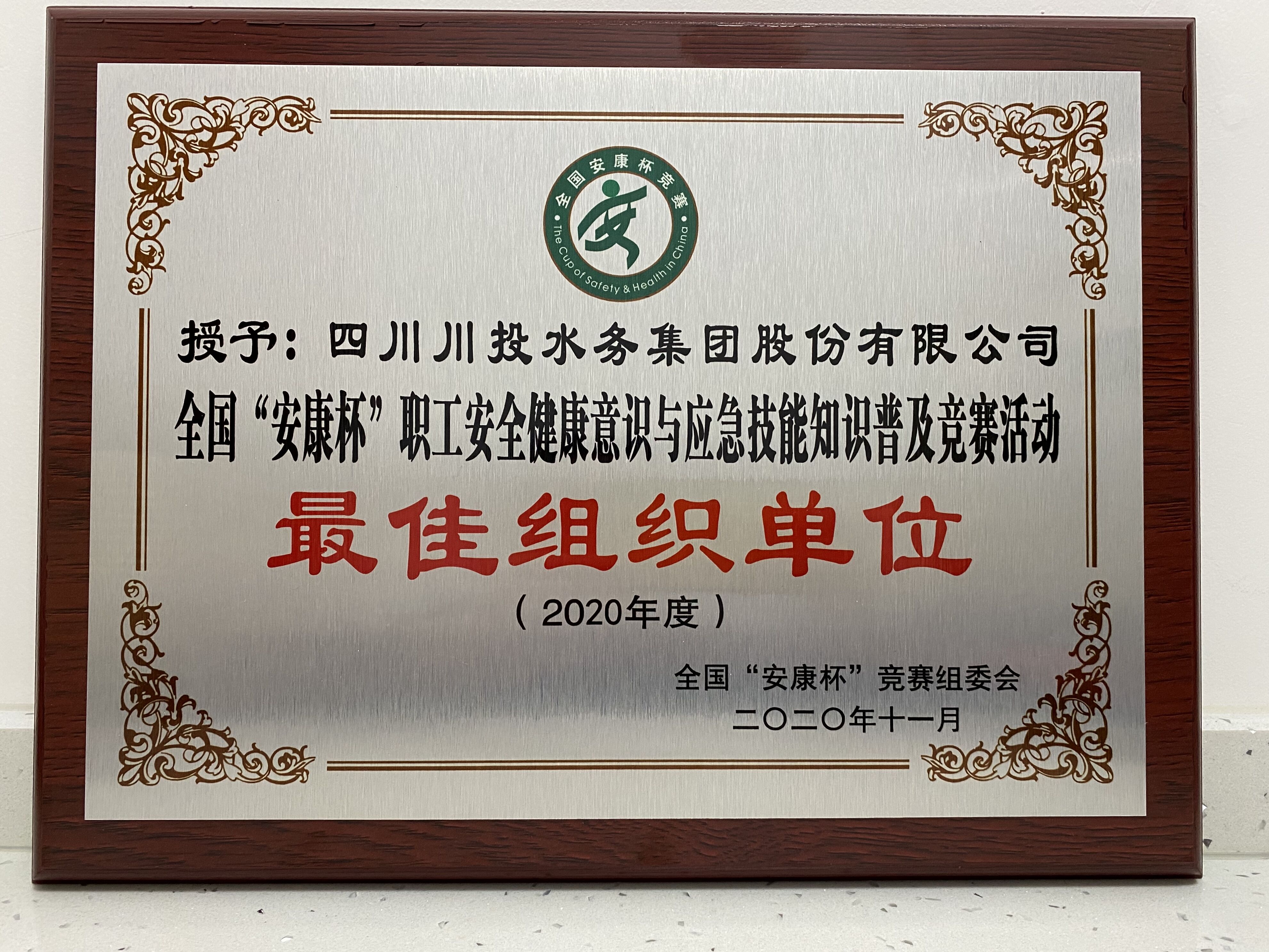 川投水务集团荣获2020年度全国”安康杯“职工安全健康意识与应急技能知识普及竞赛活动最佳组织单位