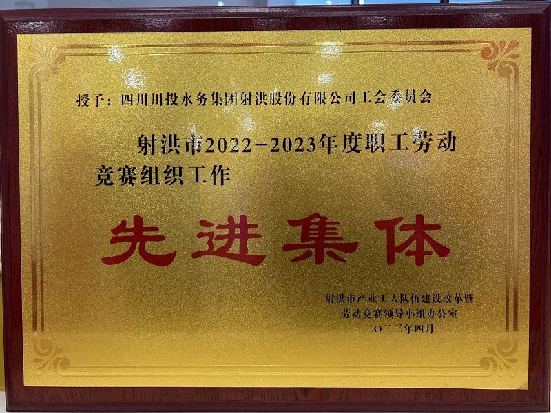 射洪市产业工人队伍建设改革暨劳动竞赛领导小组办公室授予射洪公司2022-2023年度“劳动竞赛组织先进集体奖“荣誉称号