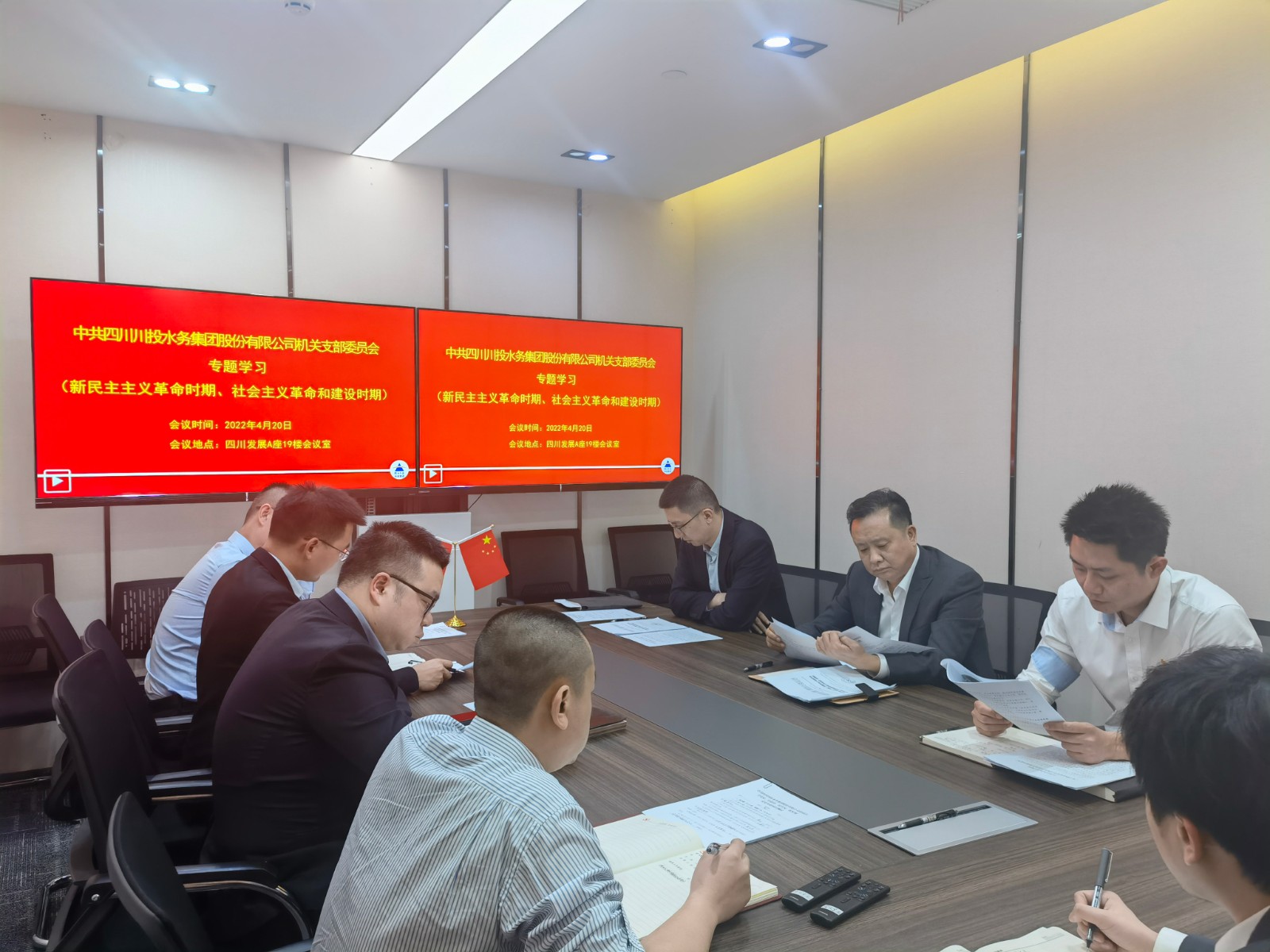 2022年4月20日,为进一步深入推进开展党史学习教育工作,继续教育引导广大党员干部切实做到学懂弄通、学有所为,川投水务集团机关支部认真组织召开了“新民主主义革命时期”“社会主义革命建设时期”专题学习会,专题学习会由机关党支部书记严斯亮主持。