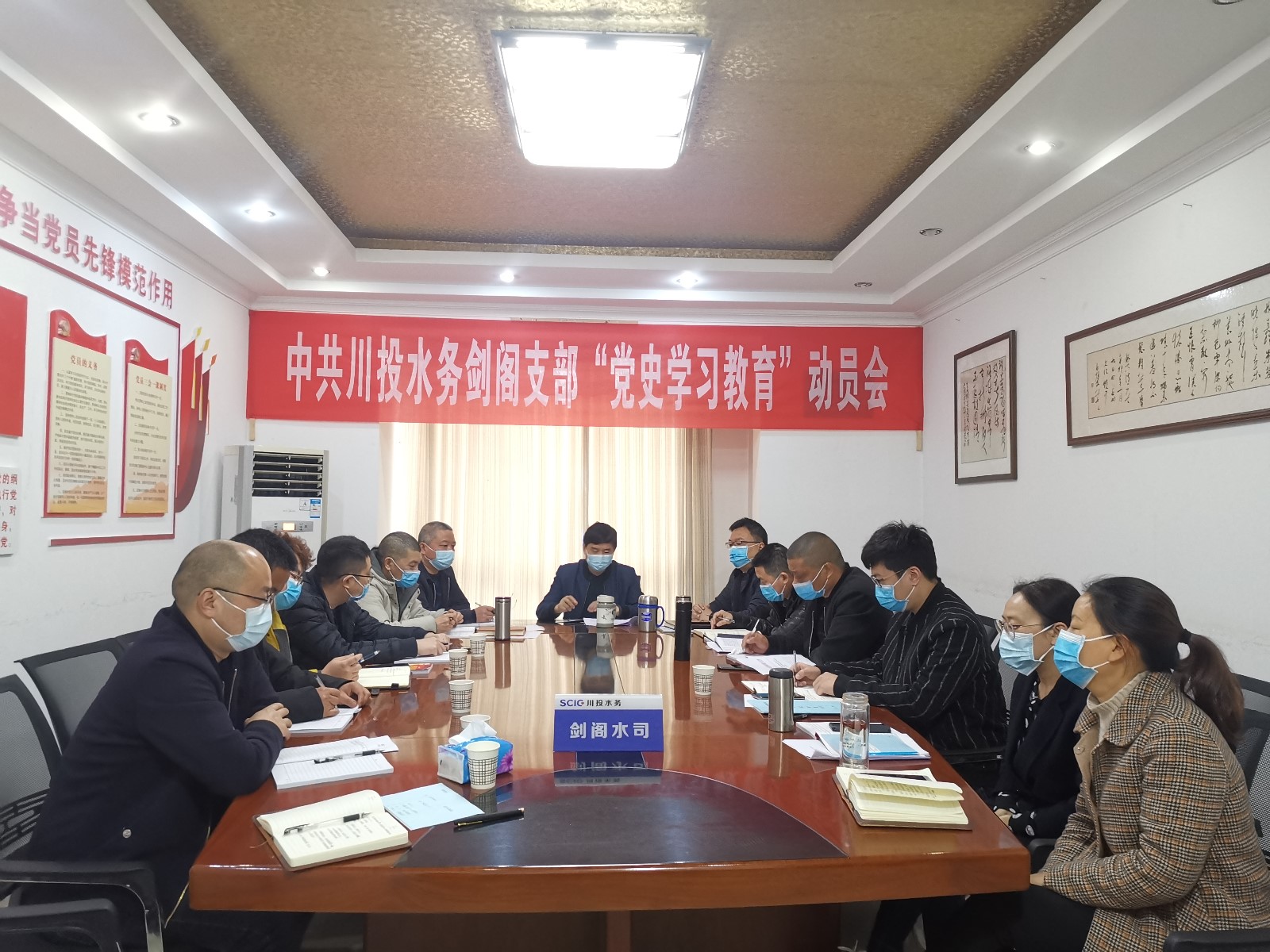 2021年3月5日上午,中共川投水务剑阁党支部书记何天政主持召开了“党史学习教育”动员会,支部14名党员参加了会议。