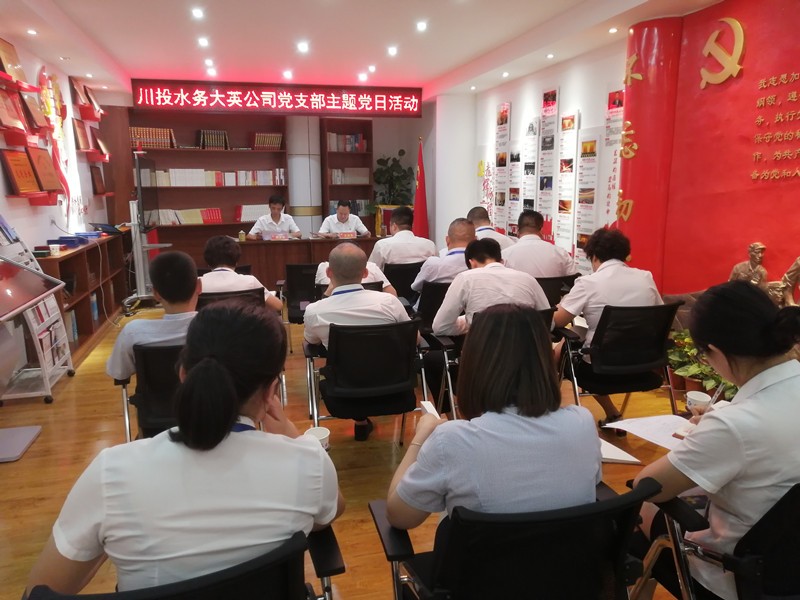 6月25日下午,川投水务大英水司开展主题党日活动暨党员大会。党支部组织委员、副总经理、工会主席王洪先,全体正式党员参加会议,会议由党支部副书记周义双主持。