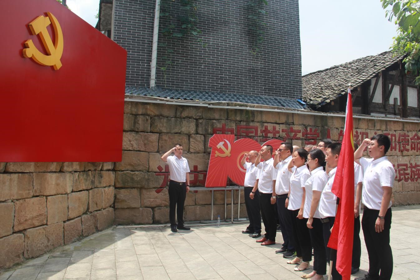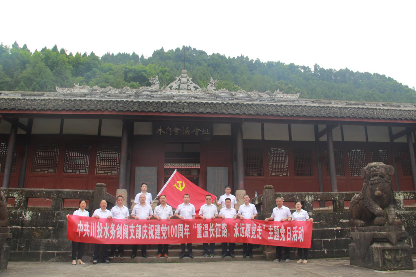 2021年6月30日,剑阁水司党支部组织全体党员来到广元市旺苍县木门会议遗址和中国红军城开展“重走长征路,永远跟党走”党史学习主题教育活动,瞻仰拜谒先烈,重温入党誓词,接受革命传统教育。