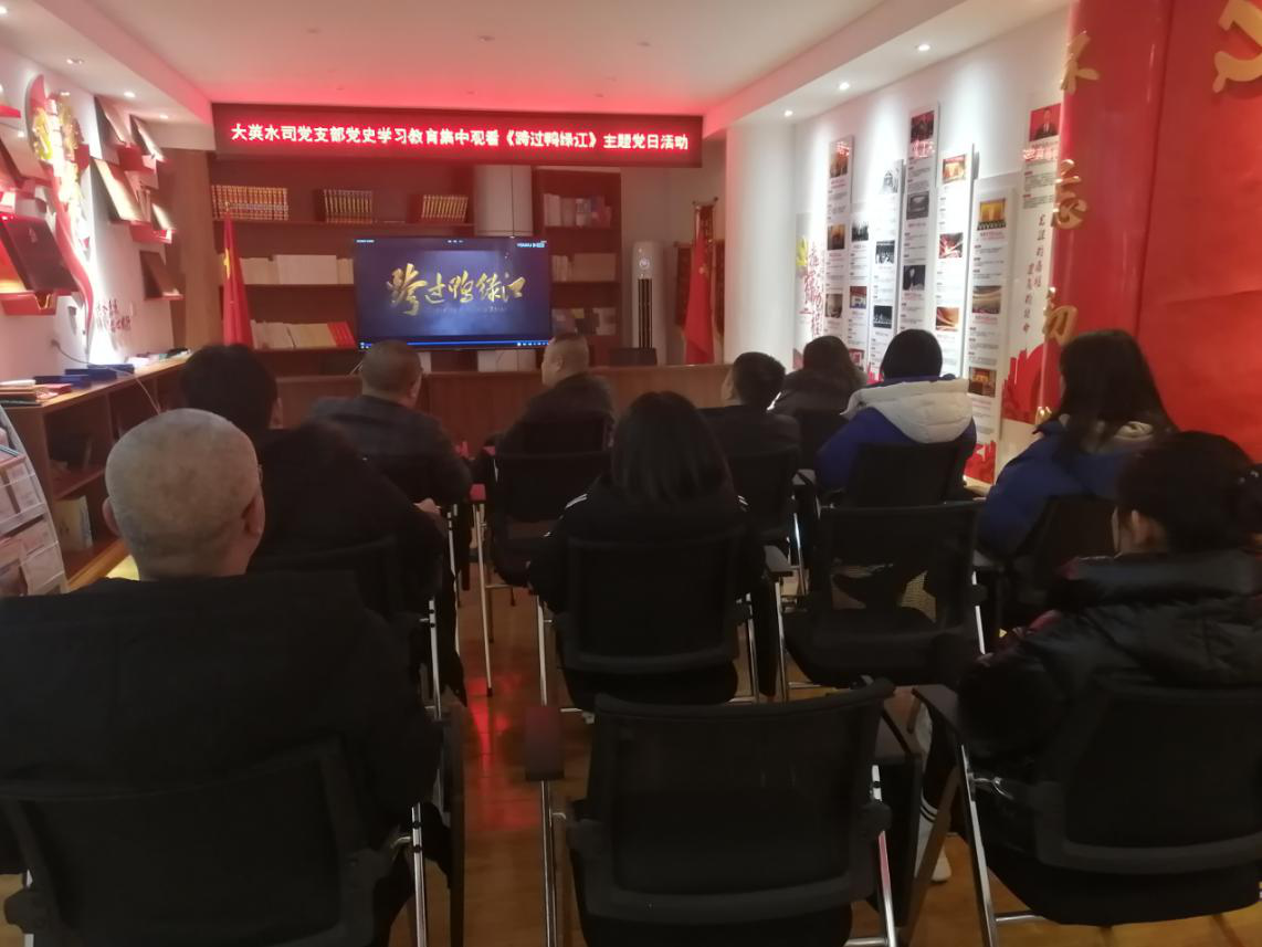 1月19日下午,川投水务大英公司党支部,根据川投水务党委统一部署安排,组织全体党员在公司党员活动室,集中观看了《跨过鸭绿江》红色主题电影。