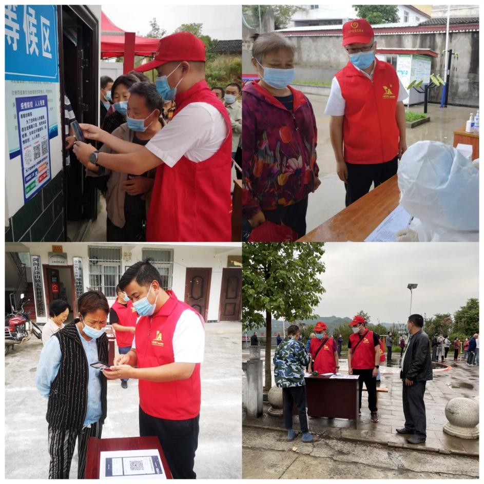 随着人流量不断增加,队员们又主动承担起维持秩序、引导扫码测温等工作。“请您带好口罩,出示行程码,扫场所码!”由于农村地区老年人居多,对核酸检测程序不了解,队员们不厌其烦地一遍又一遍地重复着引导语。有的老年人没有智能手机或者不会使用,他们又主动帮助其核实身份信息、绑定“天府健康通”APP等等,让采样过程更加流畅,效率大大提高。经过一天的努力,涂山镇全域全员核酸采样完成,无一人漏检。