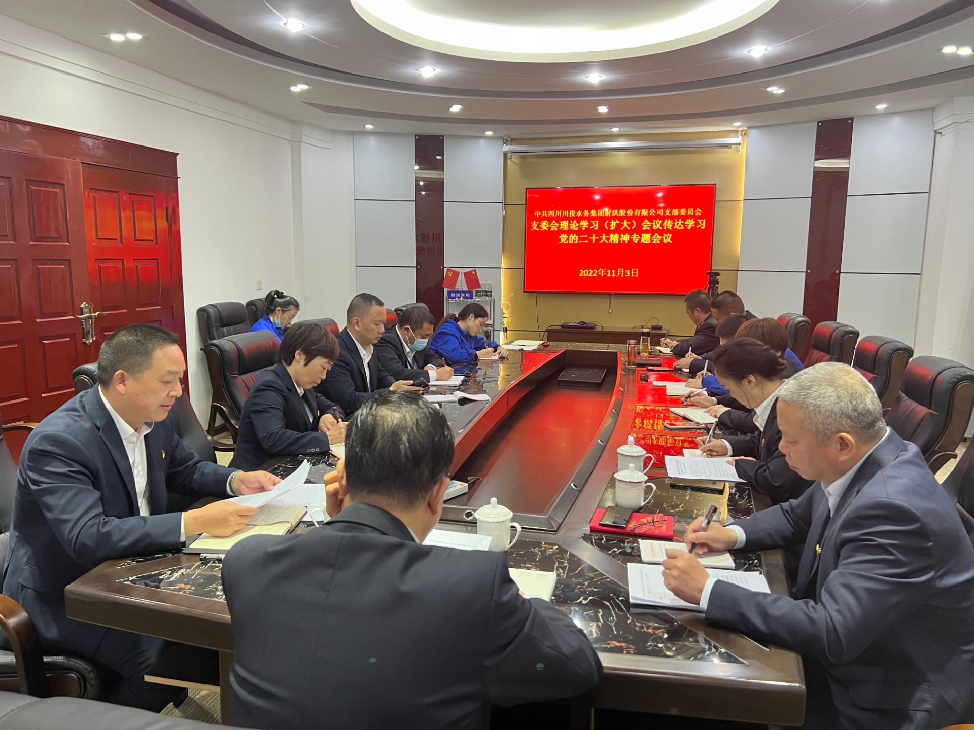 会议强调,要把学习贯彻党的二十大精神作为当前和今后一个时期的首要政治任务,认认真真、原原本本学习二十大报告和新修订的党章,在学思践悟中深刻领悟“两个确立”的决定性意义,更加自觉坚定地做到“两个维护”。要组织党员干部通过多种方式,深入系统学习党的二十大报告等重要文件,准确把握思想精髓、核心要义和实践要求,坚定推动党的二十大决策部署在公司具体化。尤其是当前,对标“年度”各项经济指标和目标任务详细对照相关数据,一是要持续有效强抓降产销差攻坚工作,提高管网运行效能;二是加强实施技术改造,做好供水保障工作;三是落实疫情常态防控,筑牢安全环保底板。以锚定“年度”任务不泄气的干劲,确保如期高质量完成全年各项目标任务,以各项工作的高效落实体现学习贯彻党的二十大精神成效。