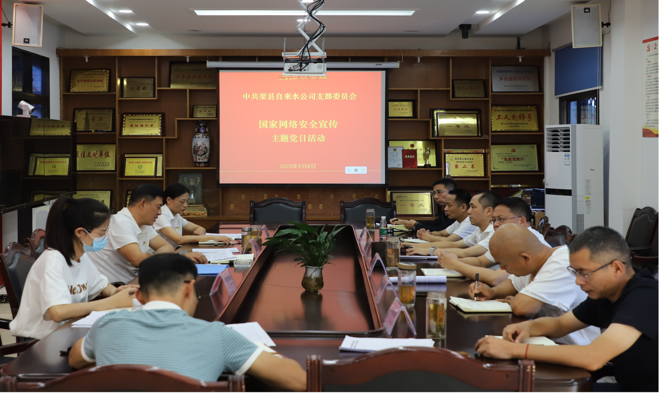 为帮助公司职工更好地了解、感知身边的网络安全风险,增强网络安全意识,共同维护国家网络安全,9月8日,荣县水司党支部开展国家网络安全宣传主题党日活动,活动由支部书记、执行董事、总经理龚庆主持,全体党员参会。