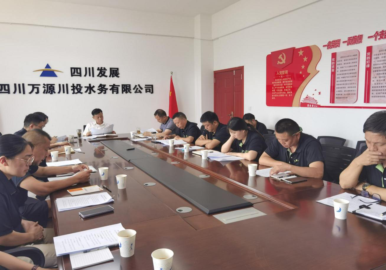 8月9日下午,万源水司党支部组织党员干部召开专题党员大会,深入学习宣传贯彻党的二十届三中全会精神,引导广大党员干部第一时间把思想和行动统一到全会精神上来。党支部书记、执行董事、总经理李至彬主持会议。