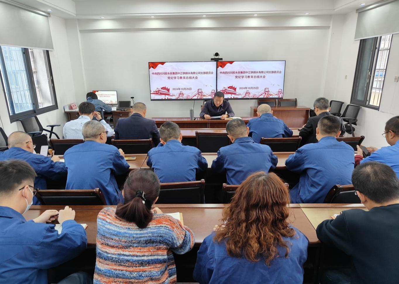 为进一步加强党的纪律建设,全面总结公司党纪学习教育情况,巩固深化党纪学习教育成果,督促公司广大干部职工切实筑牢防腐拒变的思想防线。10月25日,中江水司党支部召开党纪学习教育总结大会,会议由党支部书记朱禹主持,公司领导班子成员、支部党员、入党积极分子参加会议。