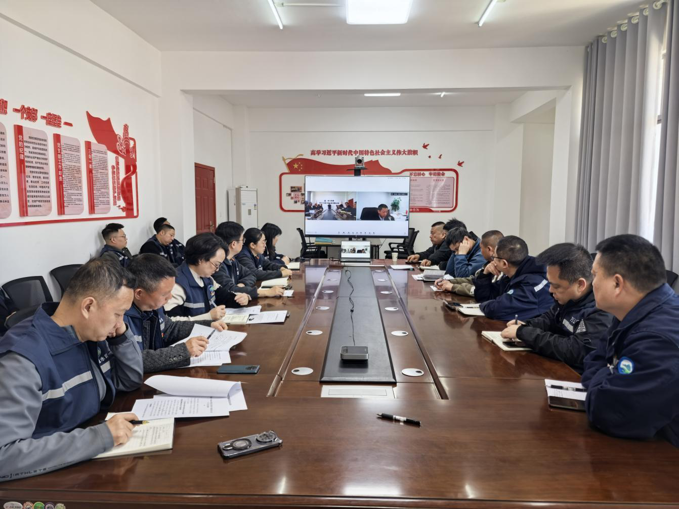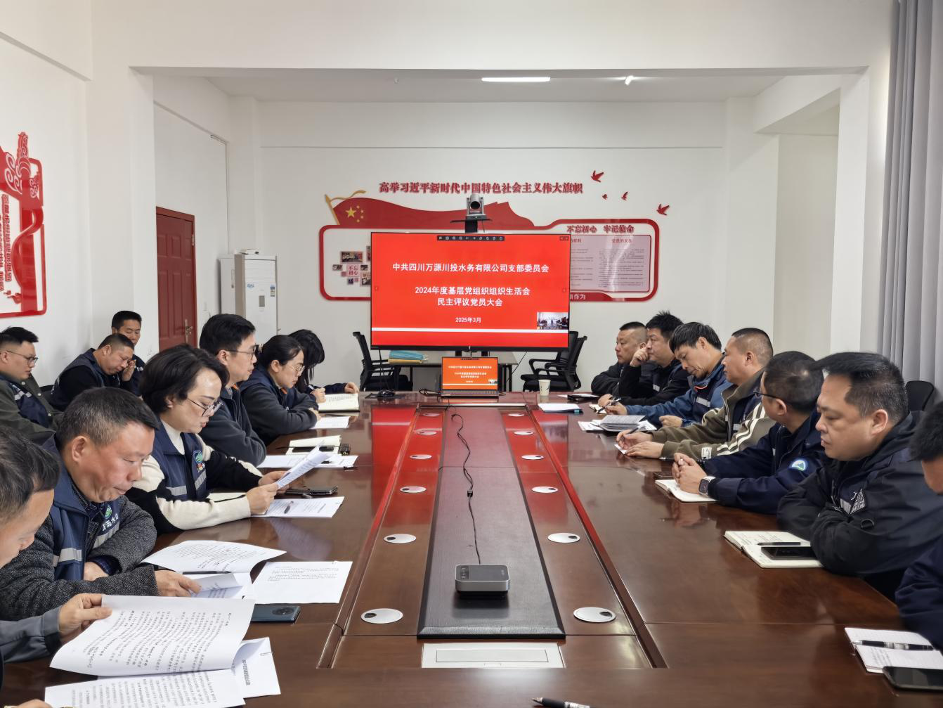 3月26日上午,川投水务万源公司党支部召开2024年度基层党组织组织生活和民主评议党员大会,全体党员参加会议,支部组织委员、副总经理胡兵主持会议。
