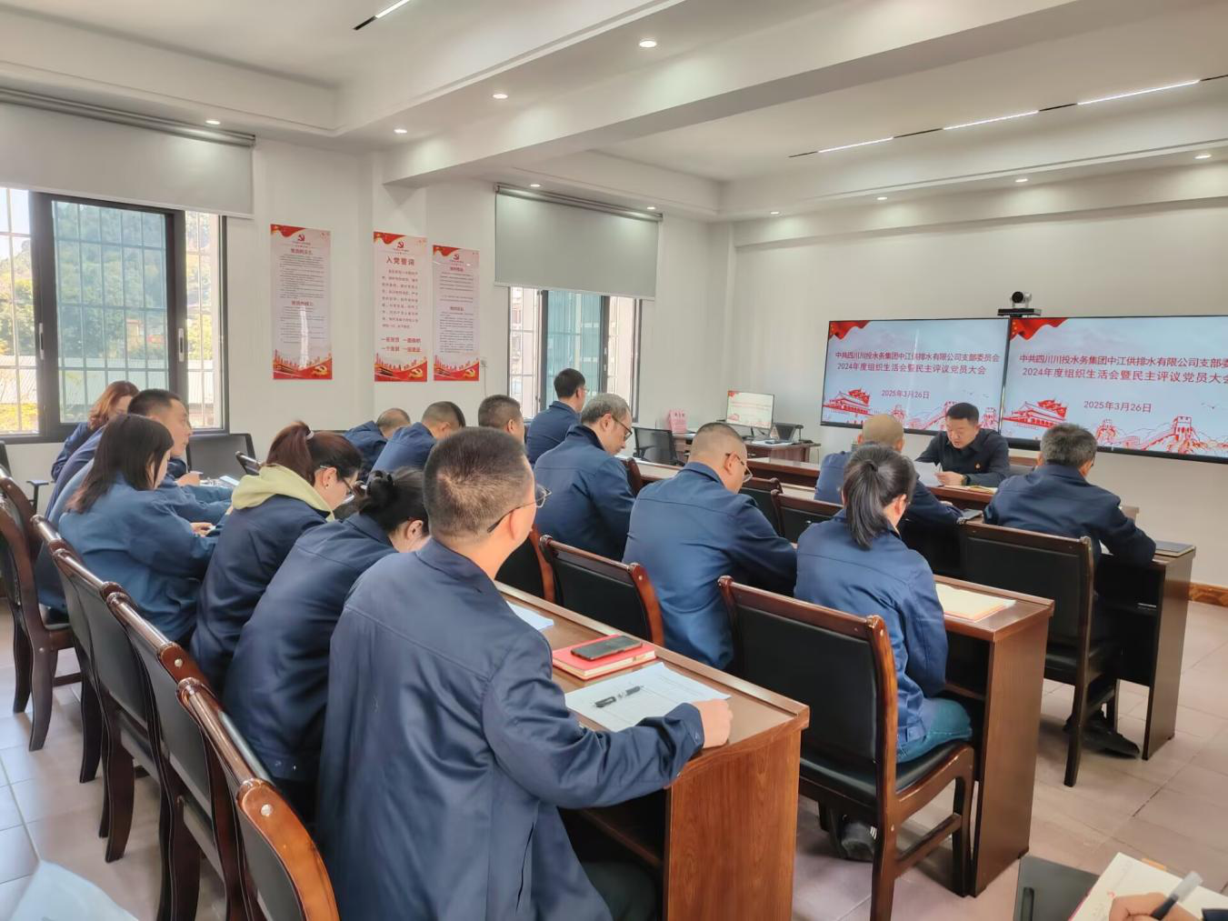 2025年3月26日,中江公司组织召开2024年度组织生活会暨民主评议党员大会,会议由党支部书记朱禹主持,支部22名党员参加会议,公司供水部、污水部2名员工列席会议。