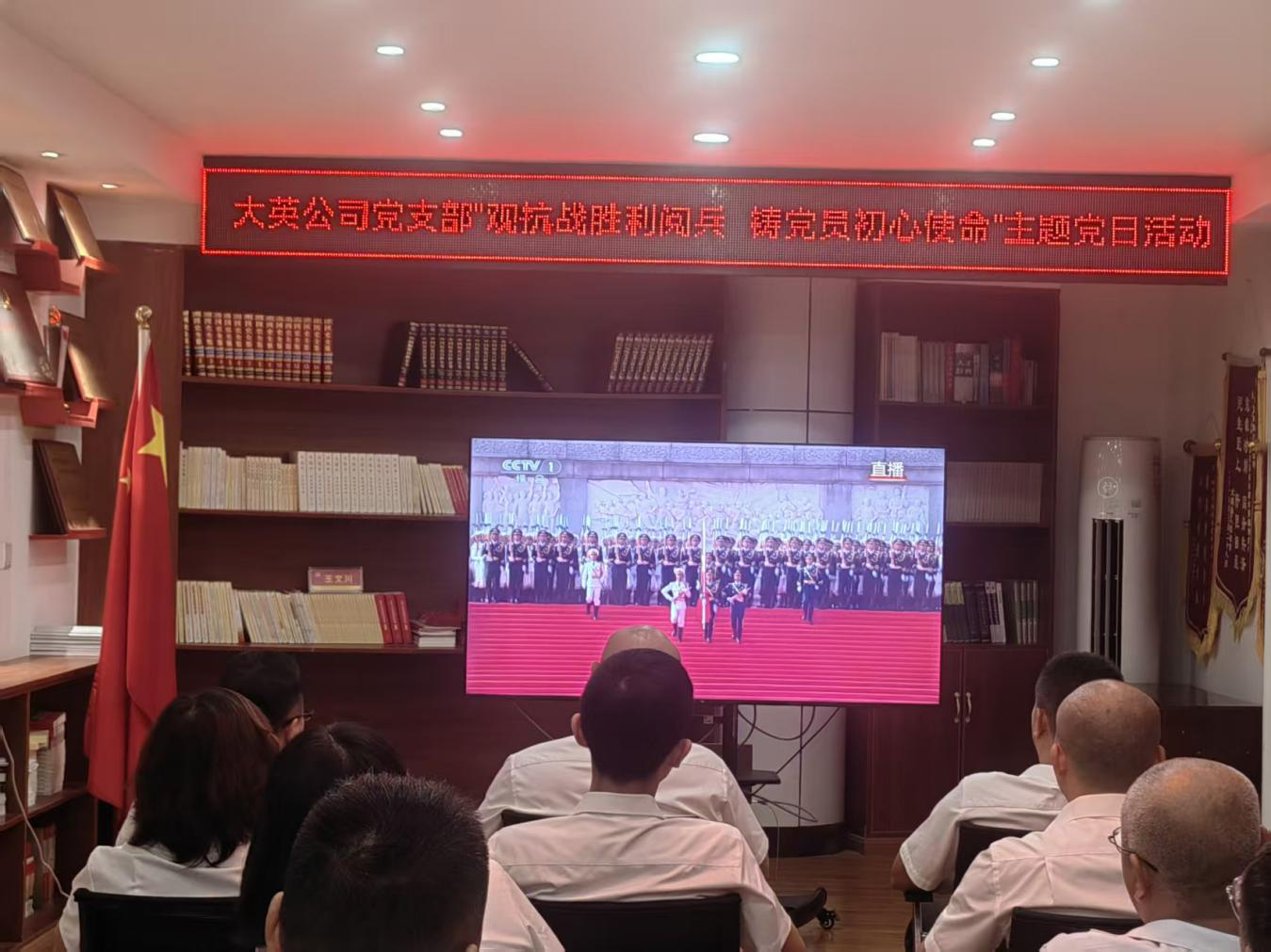 为纪念中国人民抗日战争暨世界反法西斯战争胜利80周年,弘扬抗战精神,增强党员的爱国情怀和责任感,大英公司党支部于9月3日组织党员集中观看“9.3”阅兵仪式,并开展了主题党日活动。