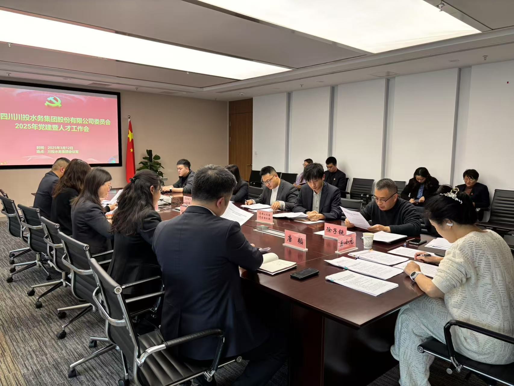 2025年3月12日,川投水务集团党委召开2025年党建暨人才工作会,贯彻落实四川发展集团党委、生态环保集团党委党建暨人才工作会会议精神、扎实推进川投水务党建人才工作。公司党委委员、副总经理徐子锐主持会议,公司党委书记、执行董事、总经理王小元总结2024年党建暨人才工作,并安排部署2025年工作。