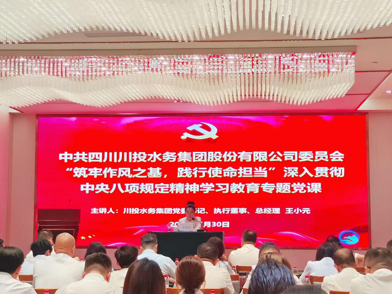 6月30日,在中国共产党104周年华诞来临之际,四川川投水务集团召开了深入学习中央八项规定精神专题党课暨“七一”表彰大会。集团党委书记、执行董事、总经理王小元作专题授课,党委委员、副总经理徐子锐主持会议。