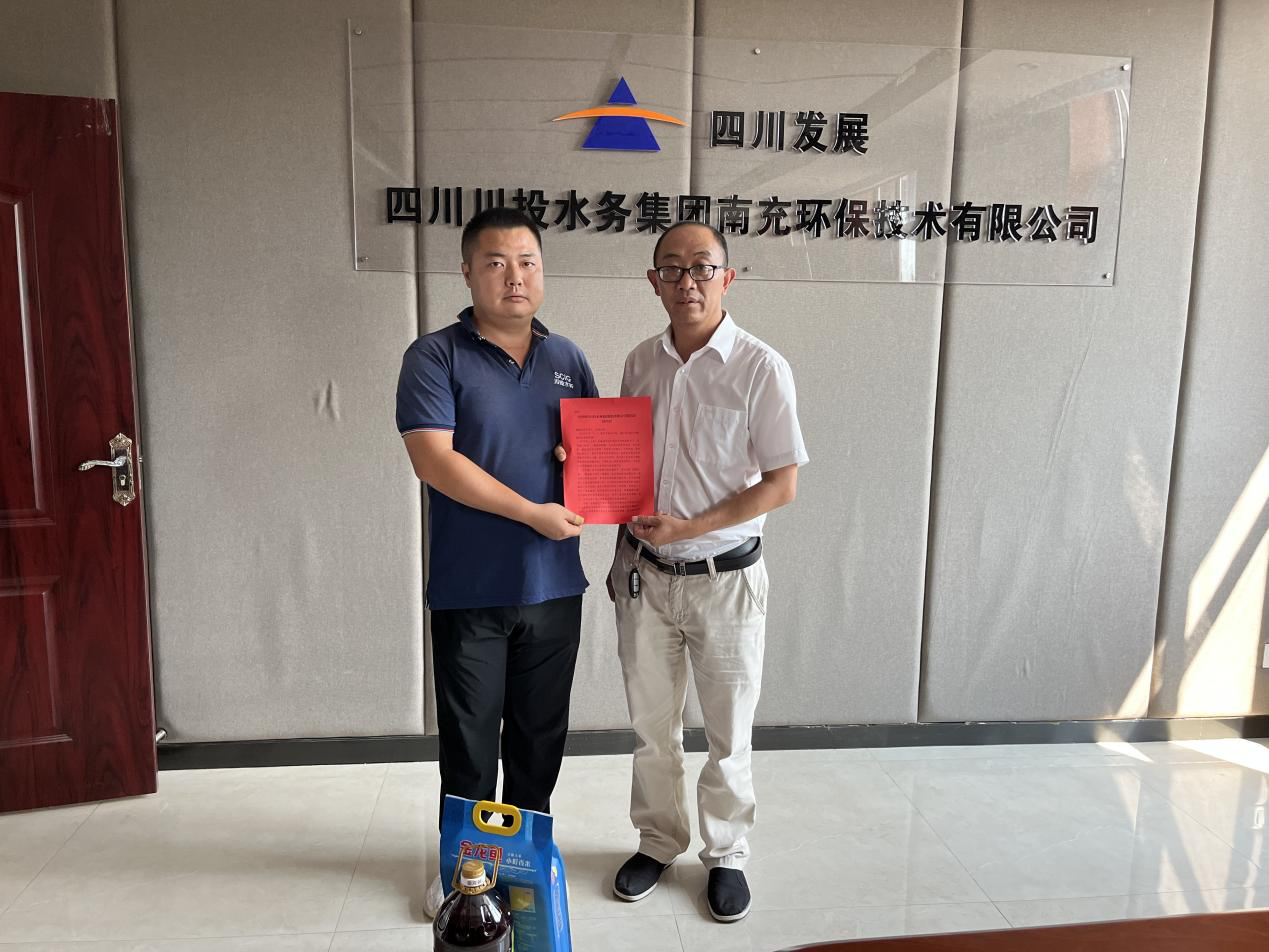 在会上杨旭东宣读了中共四川川投水务集团股份有限公司委员会关于对退役军人和其他优抚对象的慰问信,传达了川投水务集团党委对退役军人的关怀和祝福。杨旭东对公司两名退役军人的日常工作表现表示了充分肯定,希望他们继续努力,在各自的岗位上履职尽责,为南充环保的发展作出贡献。两名退役军人表示了对公司的感谢,要拿出军人的担当和风采继续在岗位上发光发热,努力为企业贡献自己的力量。