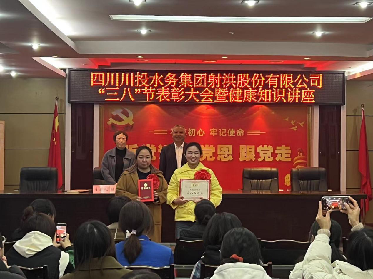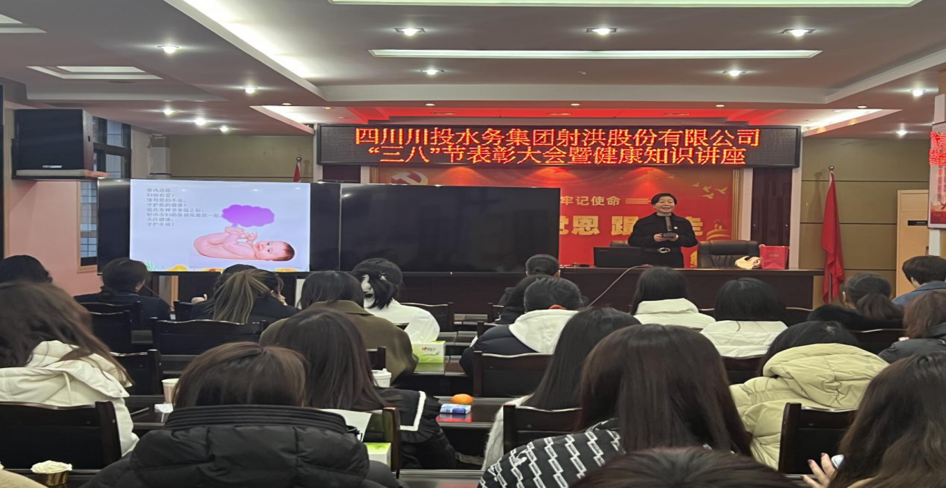 为庆祝第114个“三八”国际劳动妇女节,团结公司全体女职工勇立潮头、砥砺奋进,3月8日,川投水务射洪公司召开“三八”节表彰大会暨健康知识讲座。