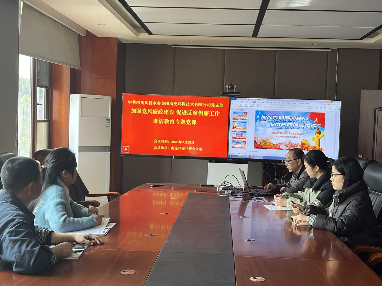 3月28日,为深入贯彻党的二十大和二十届中央纪委二次全会精神,全面落实上级反腐倡廉工作部署,加强纪律和作风建设,提高党员干部廉洁自律意识,南充环保党支部书记、董事长、总经理杨旭东组织党员干部和有入党意愿的员工,在公司三楼会议室开展“加强党风廉政建设 促进反腐倡廉工作”专题党课。