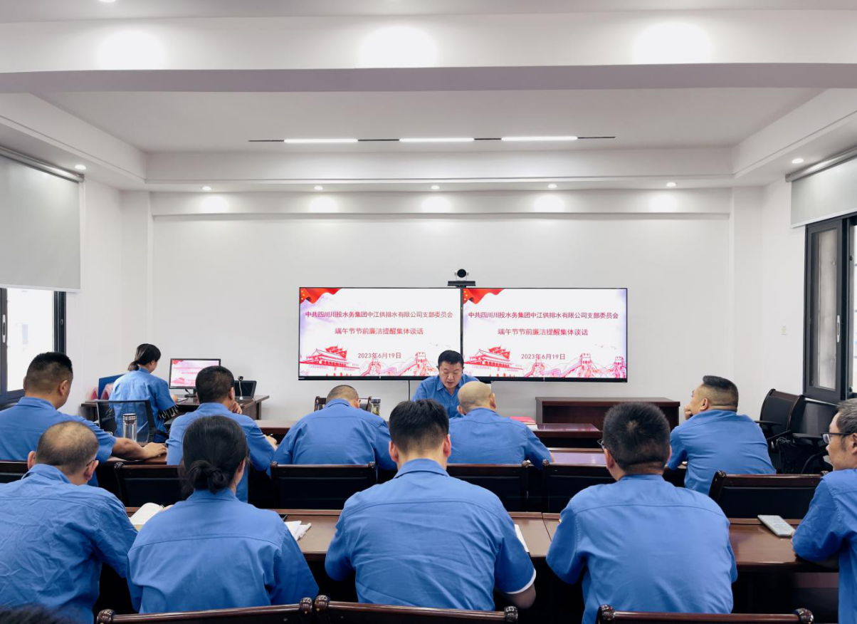 6月19日,为切实做好节日期间的党风廉政建设工作,贯彻落实中央八项规定精神,持续营造风清气正的节日氛围。中江水司党支部认真组织召开端午节前廉洁教育专题会。支部党员、入党积极分子、中层及以上管理人员共计21人参加了会议。