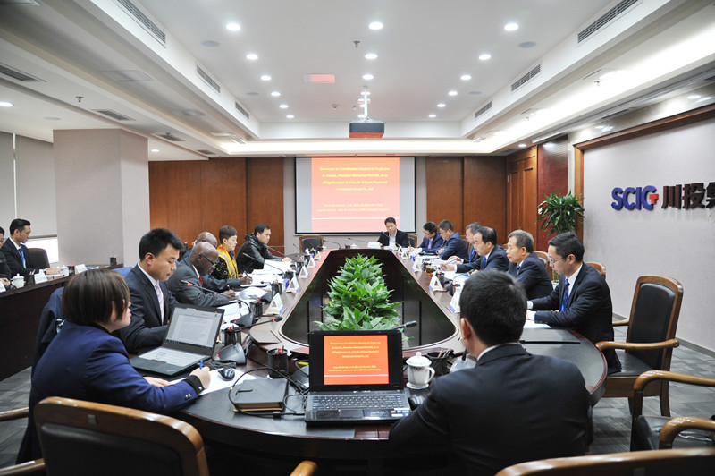 中非发展有限责任公司总经理曾珍女士对中几资源换贷款合作项目整体情况作了简要阐述。川投水务集团党委书记、董事长梁有国对川投水务集团的股东情况、发展历程、产业布局、项目分布等基本情况进行了介绍。