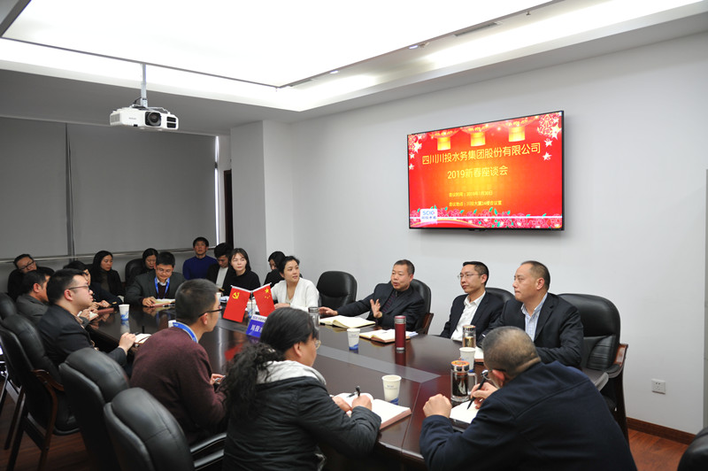 2018年1月31日,川投水务在川投大厦24楼会议室召开2019年新春座谈会,并对节日期间各项工作进行安排部署。公司党委书记、董事长梁有国,党委副书记、总经理邓锐,党委委员、纪委书记但必良,总会计师祝瑗及本部全体员工参加了会议。会议由党委副书记、工会主席王小元主持。