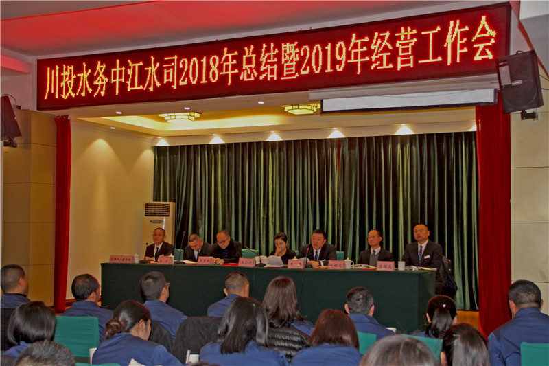 2月26日下午,中江水司在花园饭店迎宾楼四楼会议室召开2019年经营工作会。川投水务集团党委副书记、工会主席、中江水司董事长王小元、中江凯城建设投资集团有限公司副总经理李昌良出席会议并作重要讲话。川投水务中江水司经营班子成员、全体员工共计90余人参加了会议。