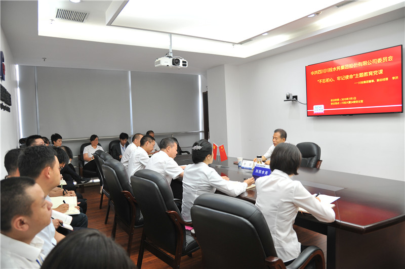 李洪的党课紧紧围绕如何理解“不忘初心、牢记使命”主题教育的深刻内涵、坚持把“不忘初心、牢记使命”主题教育摆在突出位置、如何突出“川投水务特色”开展“不忘初心、牢记使命”主题教育及川投水务如何搞好下一步发展四个方面展开。
