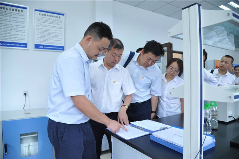 调研组一行首先前往了南充环保化验室、中控室、进出水在线仪表间、膜池及膜车间、污泥脱水间等,就贯彻落实绿色环保理念、污水处理现状等方面进行考察调研,实地指导开展“不忘初心、牢记使命”主题教育。