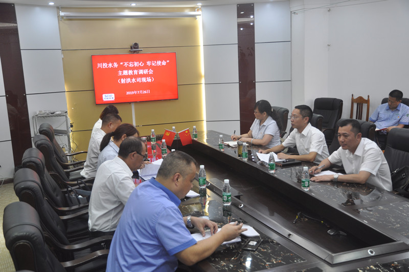 7月26日下午,水务集团党委副书记、总经理邓锐带领水务集团安全环保部经理马玉彬、生产技术部经理王镇到射洪水司开展“不忘初心、牢记使命”主题调研,与射洪水司领导班子及各部门负责人进行交流座谈。