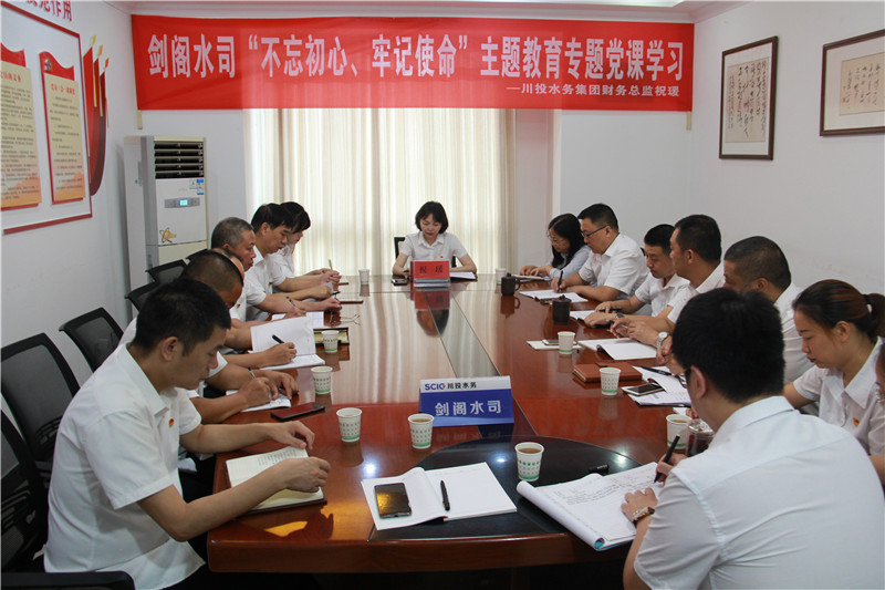 8月21日,川投水务集团财务总监祝瑗以“忠诚党的事业、不忘初心情怀、竭诚服务社会、牢记使命担当”为题,组织剑阁水司全体党员开展党课学习。