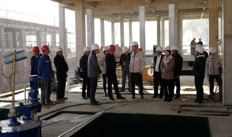 公司总经理马铭伟与中国市政西南设计院高工田伟峰带领班宏县长一行沿着工艺管道试水的线路逐一视察了各构建物和设备的开启运行状态,班宏县长对一枝山项目进度给与了高度评价。