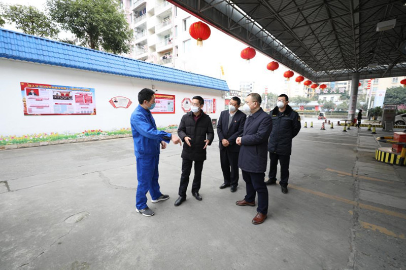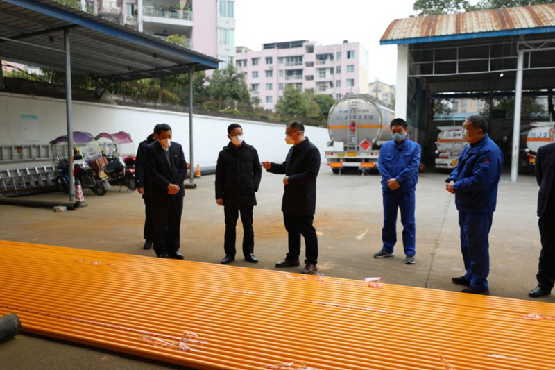 在客户服务中心,邓总首先看望慰问了坚守岗位的一线工作人员,现场了解了客户服务中心值班、用户缴费、疫情检查登记台账等情况。在宏源大酒店,邓总详细了解了宏源公司防护用品储备、入住酒店客人、疫情期间对酒店同期营业收入影响等情况,查看了酒店公共区域卫生防疫登记台账。在CNG加油加气站,邓总了解了疫情期间加油加气现场疫情防控工作、加油加气生产经营等情况。来到安装公司加工厂,邓总现场察看了安装公司复产复工前的准备工作。