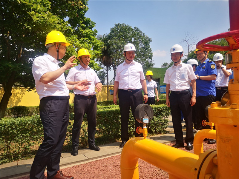 中午1时许,黄董事长一行不顾室外超过34度的高温,顶着炎炎烈日先后前往宏源公司气井、储配站、CNG加油加气站、液化气充装站等地视察调研、检查安全工作,并前往客户服务中心了解了宏源公司打造一站式服务、信息化建设等情况。在井场和储配站,黄董事长一行了解了场站设备设施、工艺流程和安全运行等基本情况,并重点察看了安全生产清单制资料台账和燃气SCADA系统;在CNG加油加气站和液化气充装站,黄董事长一行察看了加油加气流程、储气罐、压缩机房和液化气储罐区安全运行情况,了解当前成品油和压缩气的价格、行情、油和气各自优势等经营细节。黄董事长对宏源气司“安全专家会诊”等措施给予了充分认可,要求宏源公司继续把安全供气放在首位,以优质高效服务做好民生保障,针对当前夏季高温暴雨天气,要认真吸取温岭槽罐车爆炸事故教训,加强重要区域、关键环节的安全管理,加强隐患排查治理,要坚持“以人为本,安全第一”的原则,提前做好抢险撤避应急预案,提高应急处置能力,持续保持安全平稳发展态势。