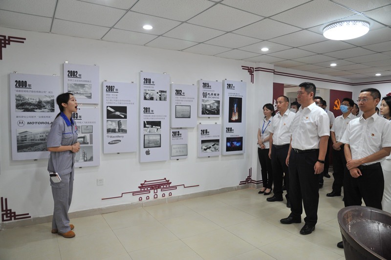 “宏明记忆”党性教育基地是通过老照片、老物件反映“三线建设”时期的宏明电子厂(国营七一五电子厂)。在讲解员的带领下,大家依次参观了“光辉历程、重回国企、峥嵘岁月”3个展厅和党员活动室,大家认真听取讲解,仔细观看一张张承载记忆的老照片、一件件珍藏多年的生活物品、一台台蕴含历史沧桑的老设备,记录着中国电子元器件发展历史,述说着宏明电子厂走过的62年光辉岁月,讲述着老一辈宏明人艰苦创业、产业报国的初心与情怀。随后,党委书记、董事长黄劲同志领誓,全体党员在党旗前重温了入党誓词。