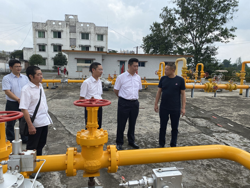 在名山气司,黄董事长一行先后来到配气站、CNG加油加气站和办公区域,认真查看生产工艺、设备设施运行情况及安全措施落实情况,详细询问了名山气司气源保障、供气规模、供气范围、CNG加气及加油业务管理等情况,并看望慰问了在岗一线员工。