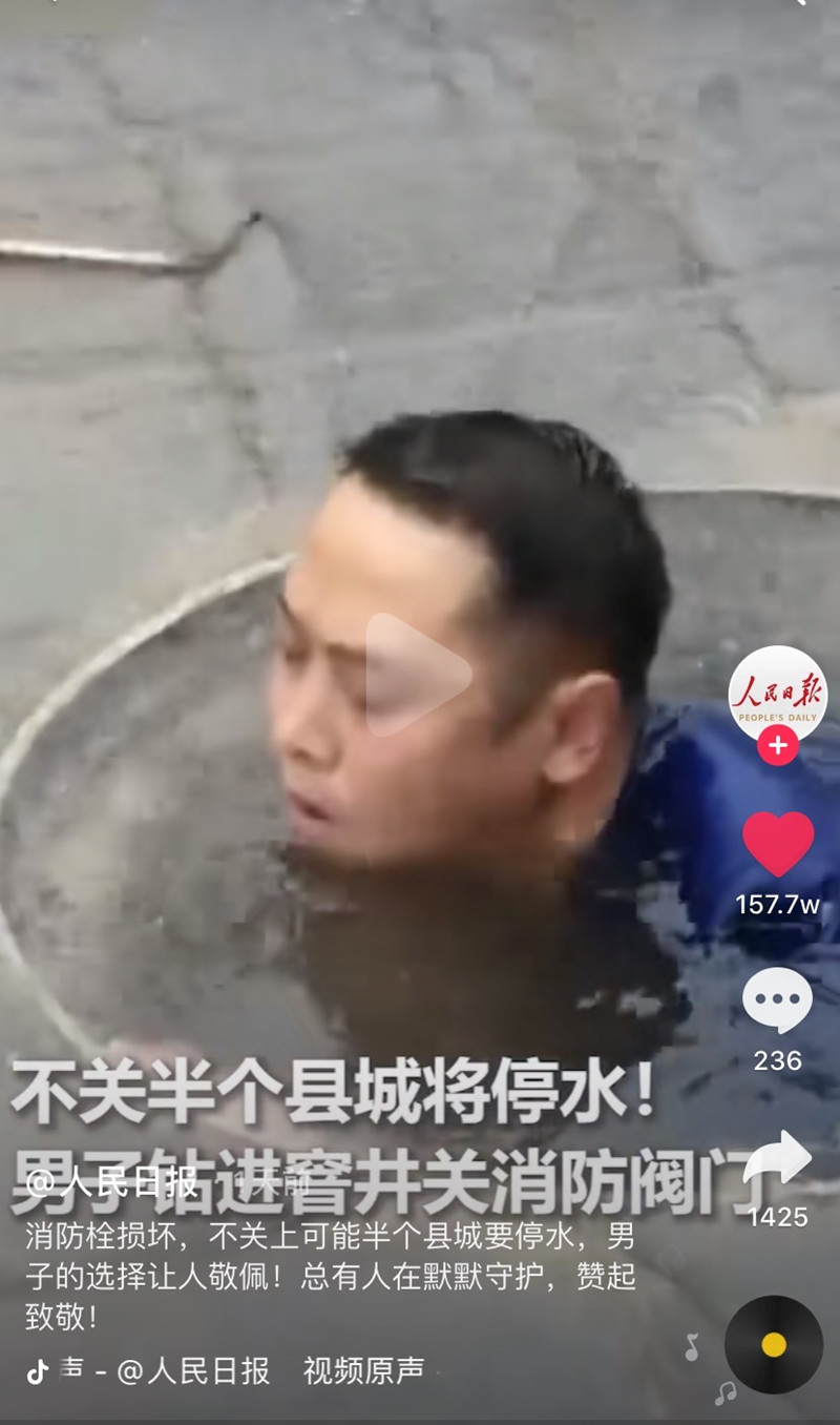 事情的经过是这样:2020年8月7日早上8时许,四川省大英县天星大道一消防栓损坏,川投水务大英水司闻讯第一时间组织维修抢险队伍前往现场排险处置。当维修人员赶到现场时,消防水呈水柱状外喷,不仅路面大量积水,阀门井也早已被外喷的消防水灌满。此时正值用水早高峰,如果选择关掉主管阀门,将会导致附近区域大面积停水。为了最大限度保障城区居民用水,视频中的主人公魏巍不假思索地撬开阀门井盖,在短短1分多钟时间内5次潜至近2米深的水下成功关闭阀门,并以最快的速度更换损坏的消防栓,恢复了该片区的正常供水,没有引发大面积停水。