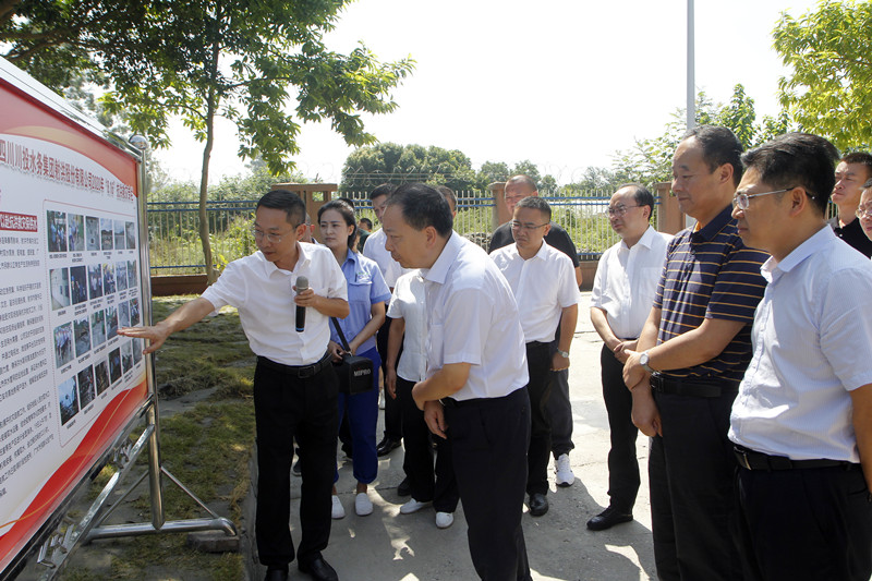 8月25日上午11时,遂宁市委副书记、市长邓正权,市委常委、政法委书记、总工会主席周霖临等一行到川投水务射洪水司广兴镇龙滩村取水口调研灾后恢复重建工作。射洪市委副书记、市长张韬,川投水务集团党委副书记、总经理邓锐陪同调研。