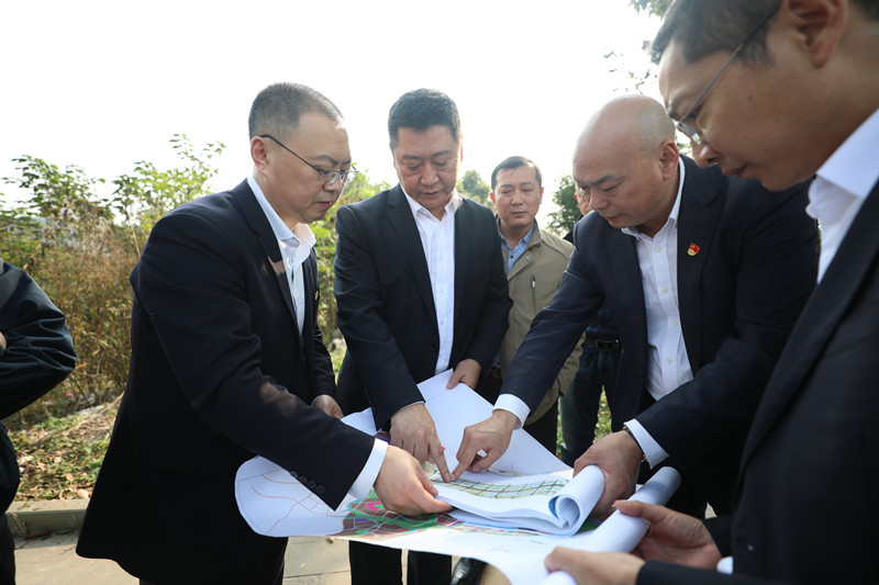 在项目选址现场,射洪市经开区管委会副主任蒲俊详细介绍了项目选址的地理位置和周边交通条件等情况,宏源公司党委书记、总经理李旭东对项目前期筹备工作作了汇报。