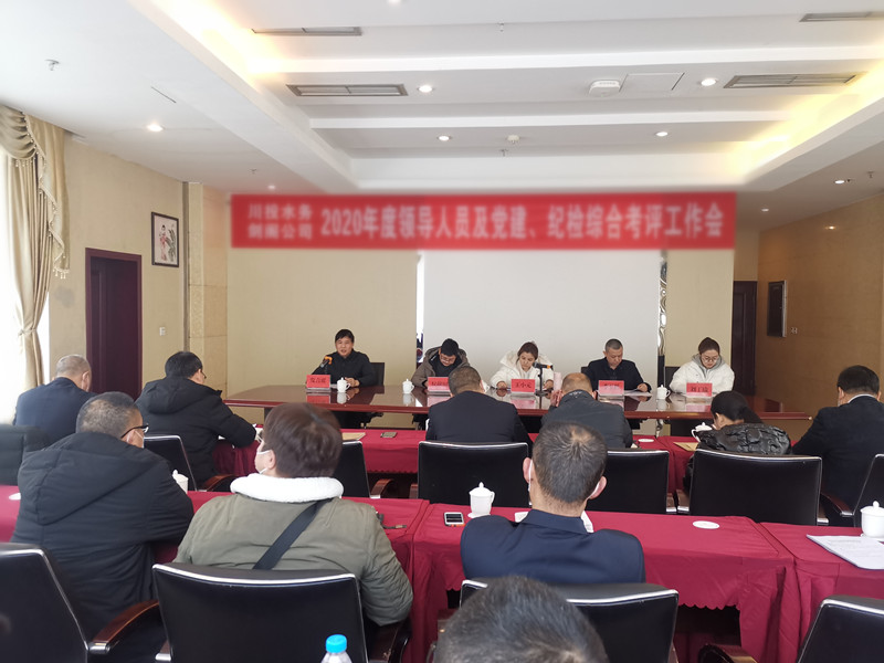 2021年1月26日,川投水务集团党委副书记、工会主席王小元率川投水务集团人力资源部部长侯献国、党群工作部副部长李至彬、战略投资部刘丁瑜到剑阁公司开展2020年度综合考评工作。
