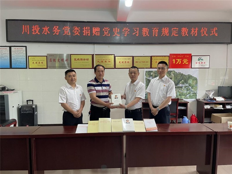 为不断丰富党员群众精神文明生活,扎实深入开展党史学习教育,积极助力乡村振兴,6月3日,川投水务集团党群工作部副部长李至彬一行来到定点帮扶点乐山市金口河区永胜乡民主村开展捐赠党史学习教育书籍活动。捐赠仪式上李至彬副部长代表川投水务党委向民主村捐赠了党史学习教育书籍,此次捐赠的书籍共8套,41册,包含《习近平论中国共产党历史》《毛泽东、邓小平、江泽民、胡锦涛关于中国共产党历史论述摘编》《习近平新时代中国特色社会主义思想学习问答》《中国共产党简史》等4本党史学习教育规定教材,及《习近平谈治国理政》第三卷、《习近平新时代中国特色社会主义思想学习纲要》等政治理论学习教材。