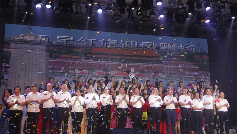 随后在凌云书记的带领下,与会人员共同唱响《没有共产党就没有新中国》,一曲《没有共产党就没有新中国》,是壮美的情怀,是温暖的力量,是中国共产党人同心同德的天籁和音。整台文艺汇演暨表彰盛典历时210分钟,分为第一篇章“不忘初心、牢记使命”,第二篇章“百年峥嵘、天耀中华”,第三篇章“美丽水务、再谱新篇”,第四篇章“感恩奋进、再次出发”,“表彰盛典”及尾声“爱我水务、祝福祖国”,共表演节目19个。活动表彰了川投水务集团“最美扶贫干部”、“工人先锋号”、“劳动模范”、“三八红旗集体”、“三八红旗手”、“优秀共产党员”、“优秀党务工作者”、“先进基层党组织”。