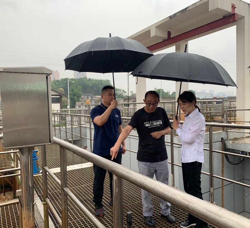 6月24日上午,川投水务集团财务总监祝瑗、安全环保部李骏一行赴南充环保开展庆祝建党100周年安全环保大检查工作,南充环保总经理杨旭东和安全员田田陪同检查。
