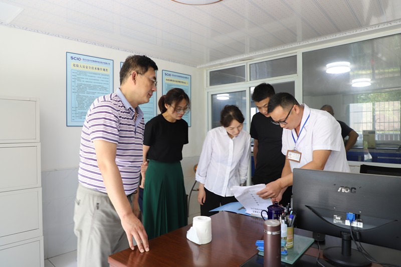 祝瑗一行首先深入生产厂区对盐酸的储存情况、盐酸储存间应急物资、危险化学品管理情况进行了检查,并着重检查了盐酸的操作程序和化验室药品试剂的使用记录台账、废液回收管理情况,随后在会议室对照川投水务集团生态环境保护专项检查记录表的内容对公司安全环保相关资料进行了仔细查看。