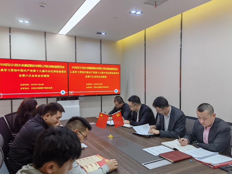 2022年1月24日,为认真学习贯彻中国共产党第十九届中央纪律检查委员会第六次全体会议精神,特别是习近平总书记重要讲话精神,要总结运用党的百年奋斗历史经验,坚持党中央集中统一领导,坚持党要管党、全面从严治党,坚持以党的政治建设为统领,坚持严的主基调不动摇,坚持发扬钉钉子精神加强作风建设,坚持以零容忍态度惩治腐败,坚持纠正一切损害群众利益的腐败和不正之风,坚持抓住“关键少数”以上率下,坚持完善党和国家监督制度,以伟大自我革命引领伟大社会革命,坚持不懈把全面从严治党向纵深推进。川投水务集团党委委员、副总经理严斯亮组织本部全体党员干部、职工对会议精神进行了专题学习。