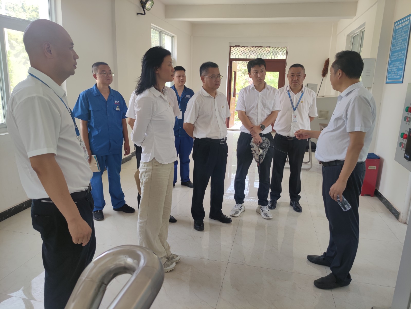 许娟董事长一行头顶赤日,冒着酷暑,分别深入新苗水厂和太吉水厂生产制水一线进行了现场调研,查看了制水工艺流程、水质检测、应急物资储备和疫情防控等方面工作。