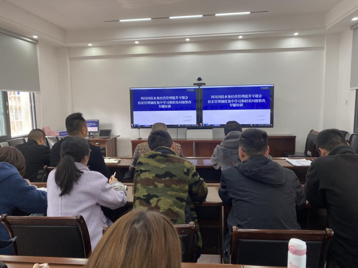 3月24日,川投水务集团通过“线上+线下”的方式举办了第二次经营管理提升专题培训会,重点围绕四川发展及四川生态环保集团招标采购管理制度及划转整合以来各子公司在招标采购方面暴露出的问题进行了集中学习和问题剖析。川投水务本部各部门员工、子公司负责招标采购的分管领导及相关工作人员共56人参加了培训。
