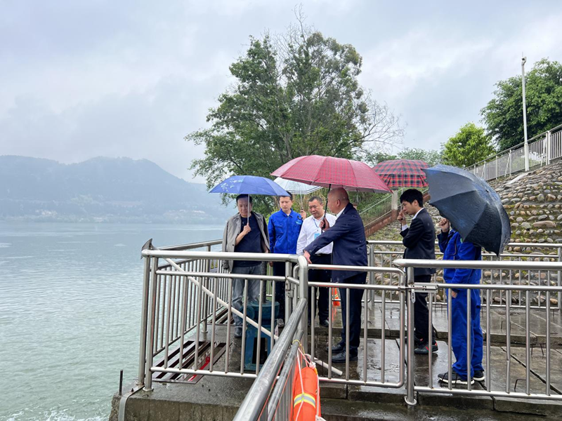 2024年4月22日,川投水务集团党委委员、副总经理刘松果率队赴射洪水司开展2024年汛前暨五一节前安全环保检查。