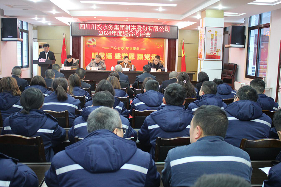 2024年12月26日,川投水务党委成员、副总经理唐韬一行4人赴射洪公司开展2024年综合考评工作,射洪公司领导班子、中层干部及员工代表共计50余人参加会议。