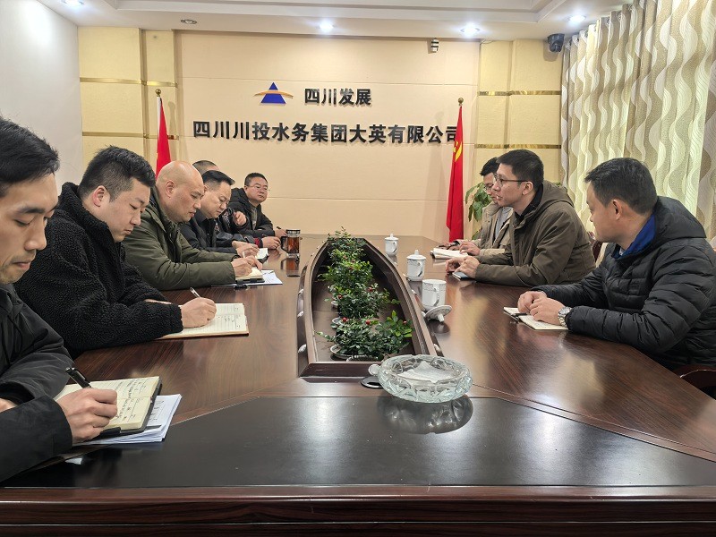 2025年3月4日,川投水务集团党委委员、副总经理严斯亮率队赴大英公司调研指导生产经营工作。大英公司党支部书记、执行董事、总经理王文川,副总经理王洪先及相关人员陪同调研。