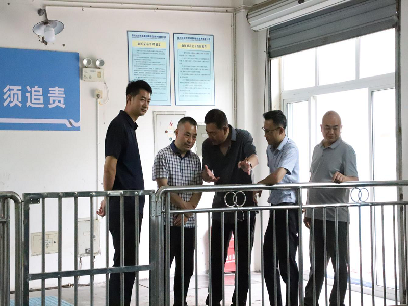 为贯彻全省安全生产调度会精神,落实四川发展安全规范工作部署,5月15日上午,川投水务集团党委委员、副总经理徐子锐一行赴荣县公司开展劳动节后复工安全专项检查工作。荣县公司党支部书记、董事长、总经理龚庆,副总经理赵勇及相关部门负责人陪同检查。