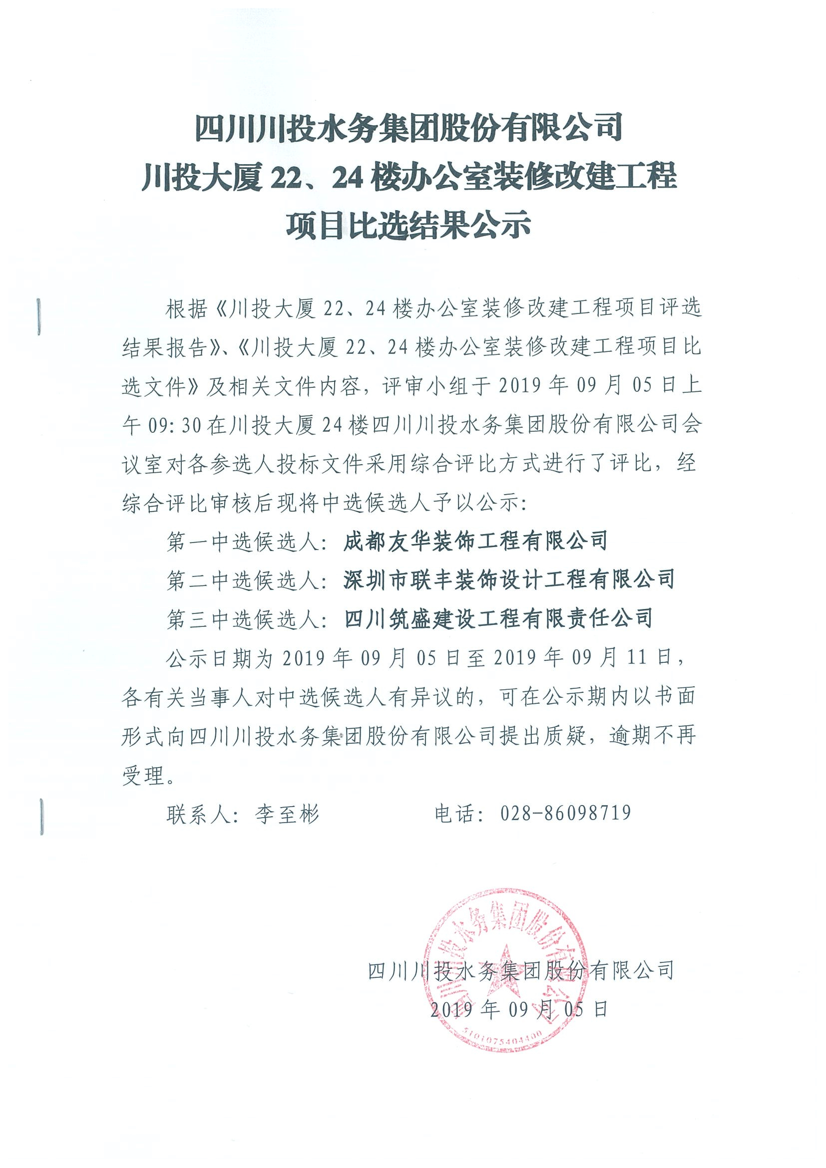 上一条:四川川投水务集团股份有限公司川投大厦22、24楼办公室弱电改建工程 项目竞争性谈判公告