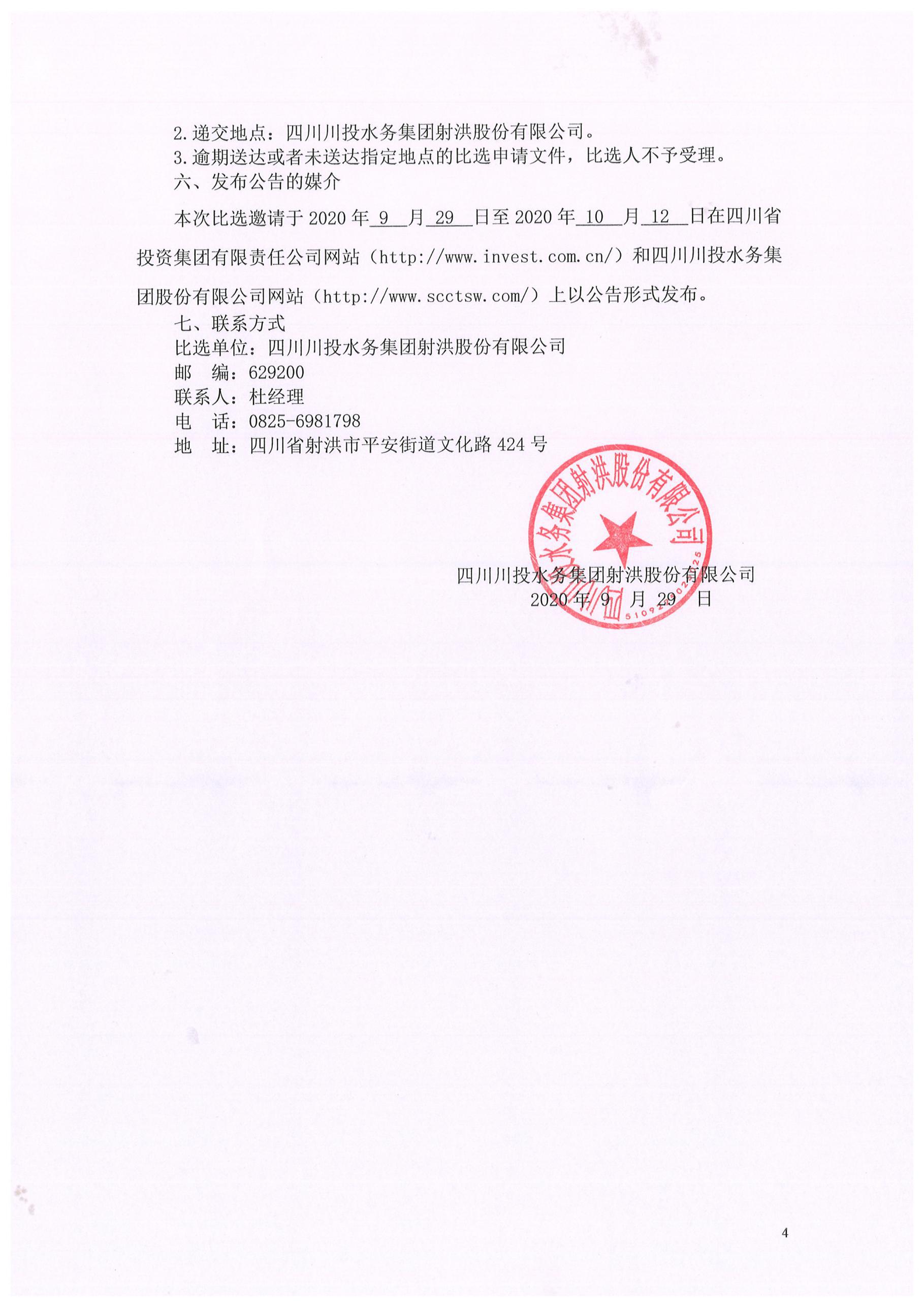 四川川投水务集团股份有限公司射洪市新建自来水厂可行性研究报告编制项目比选公告(第二次)